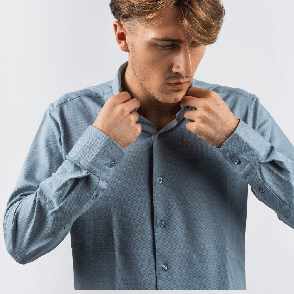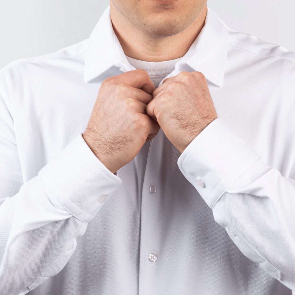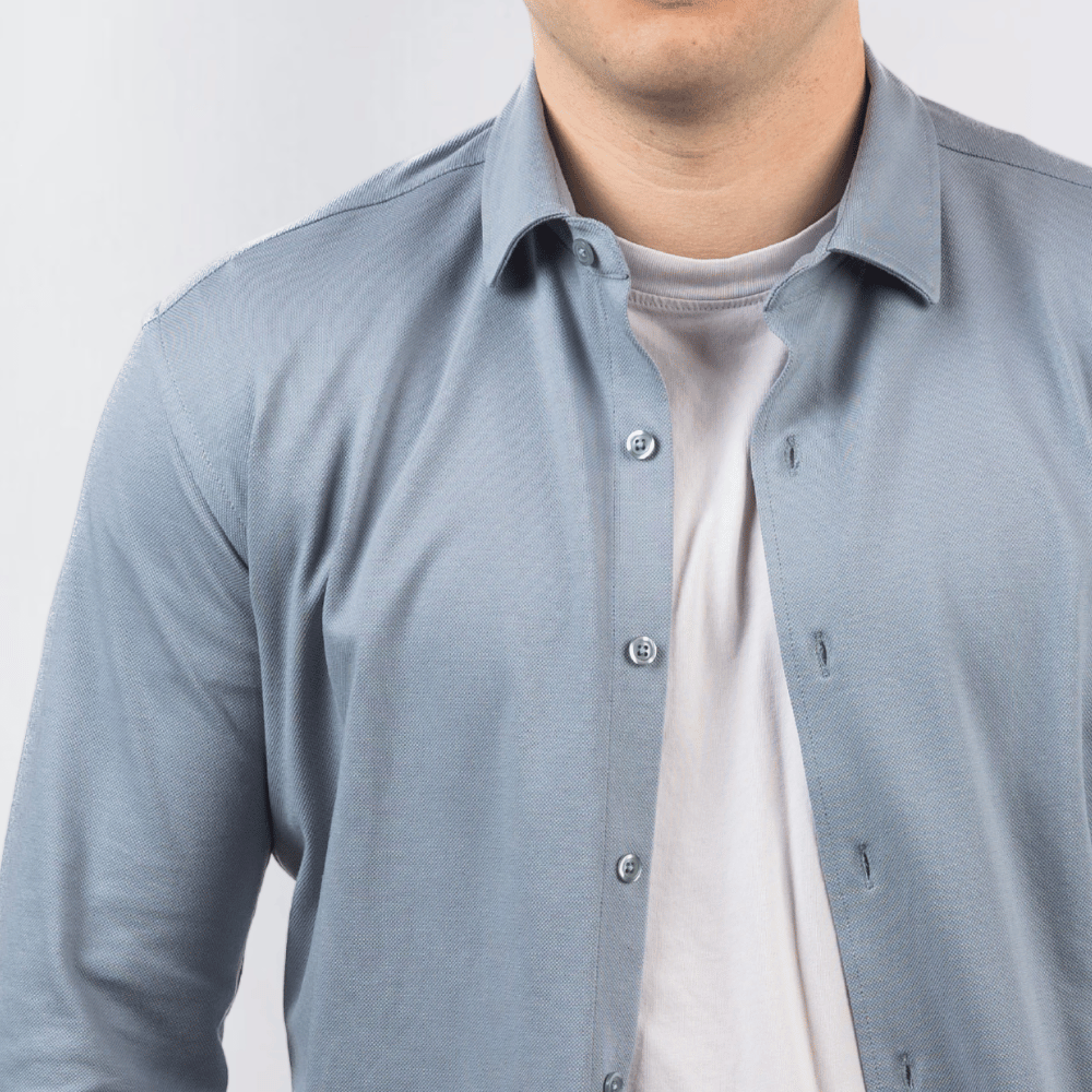 Le tissu en piqué de coton est assorti d’élasthanne, ce qui confère à la chemise une consistance souple et douce.