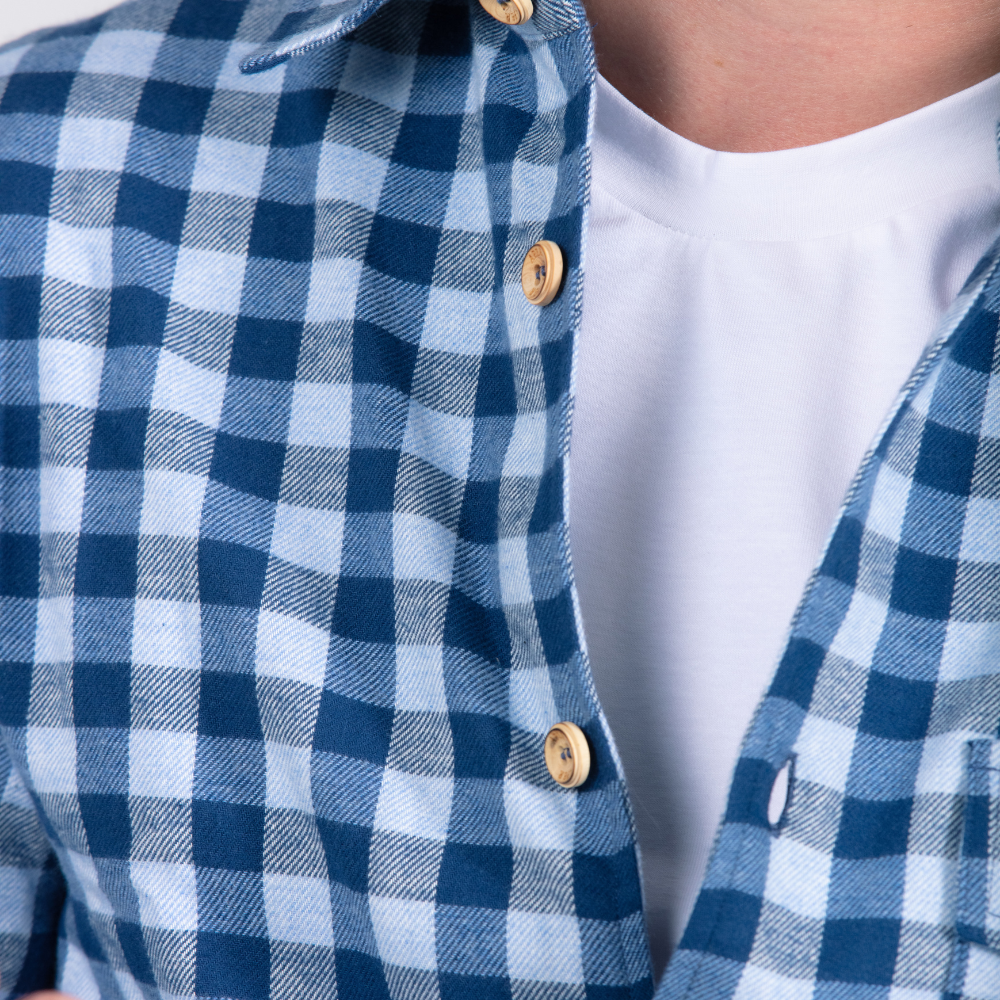 Fruit d'une collaboration avec une entreprise textile de renom au Portugal, la surchemise a bénéficié d'un processus de fabrication intégré, de la filature à la confection finale.