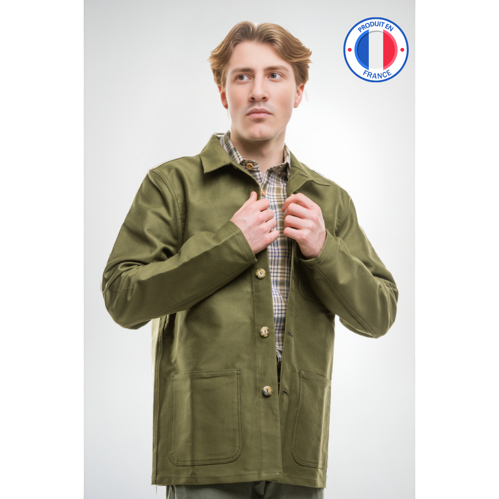 Confectionnée en moleskine de coton 100%, la veste est solide et confortable.