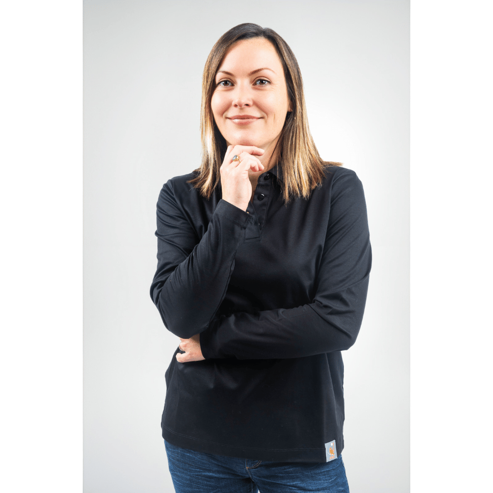 Ce polo à manches longues allie confort thermique et élégance féminine.